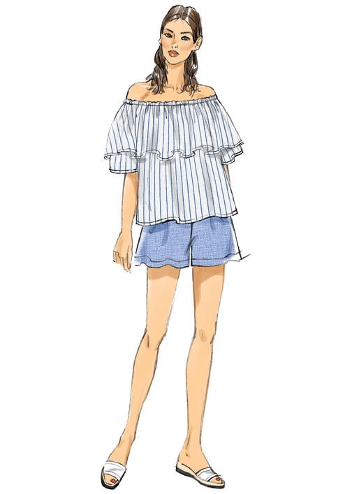 Vogue Patterns Sewing Pattern Misses Off The Shoulder Ruffle Tops Wide Leg Shorts And Pa Xs S M Walmart Com